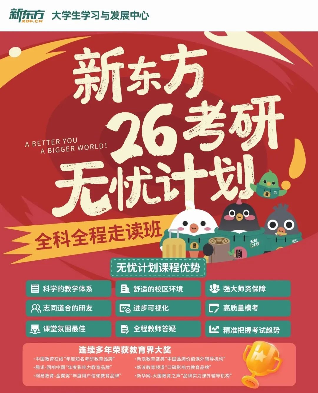 如果大家想了解更多的考研信息,包括历年分数线、历年真题、成绩查询、考研大纲、招生简章、招生计划、招生专业等,可以关注新东方考研网,也可以直接联系在线老师进行咨询。