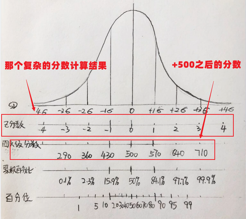 咱们都知道,任何的考试分数,在最后统计的时候,都会呈现一种正态分布,而四六级之所以采用这种报道分的计算公式,就是为了知道你在全国大学生英语水平中的排位如何。